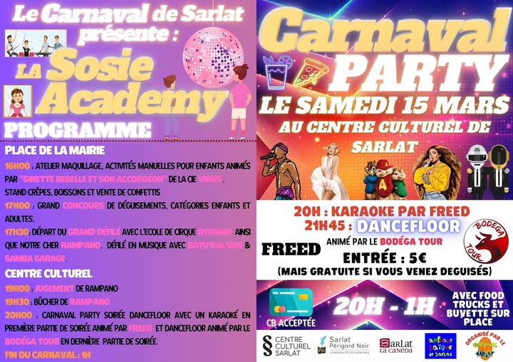 du carnaval le samedi 18 mars dès 14 h sous le chapiteau du Colombier