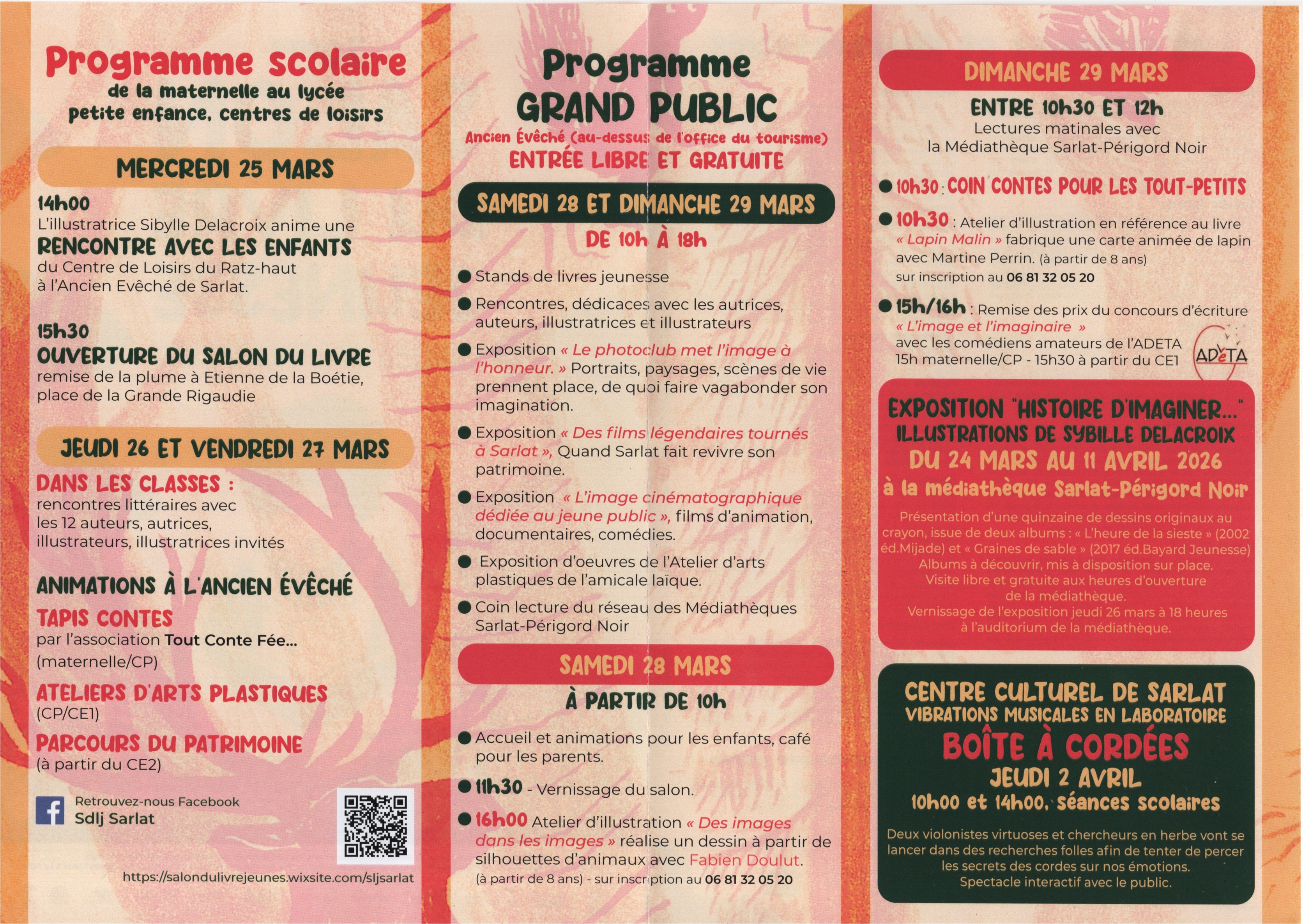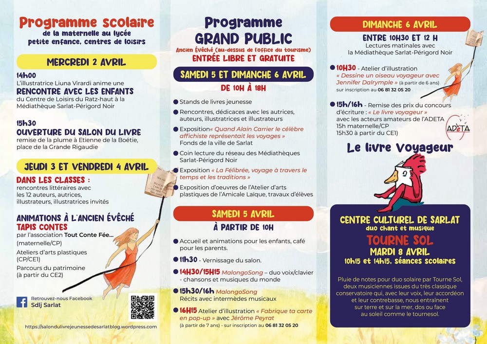 Au programme : Trois journées de visite salon avec des spectacles, des lectures dans les arbres ou dans les jardins, des rencontres-débats à destination des scolaires et deux journées ouvertes au public avec dédicaces, remise de prix, animations lectures, des conférences, des soirées conte….